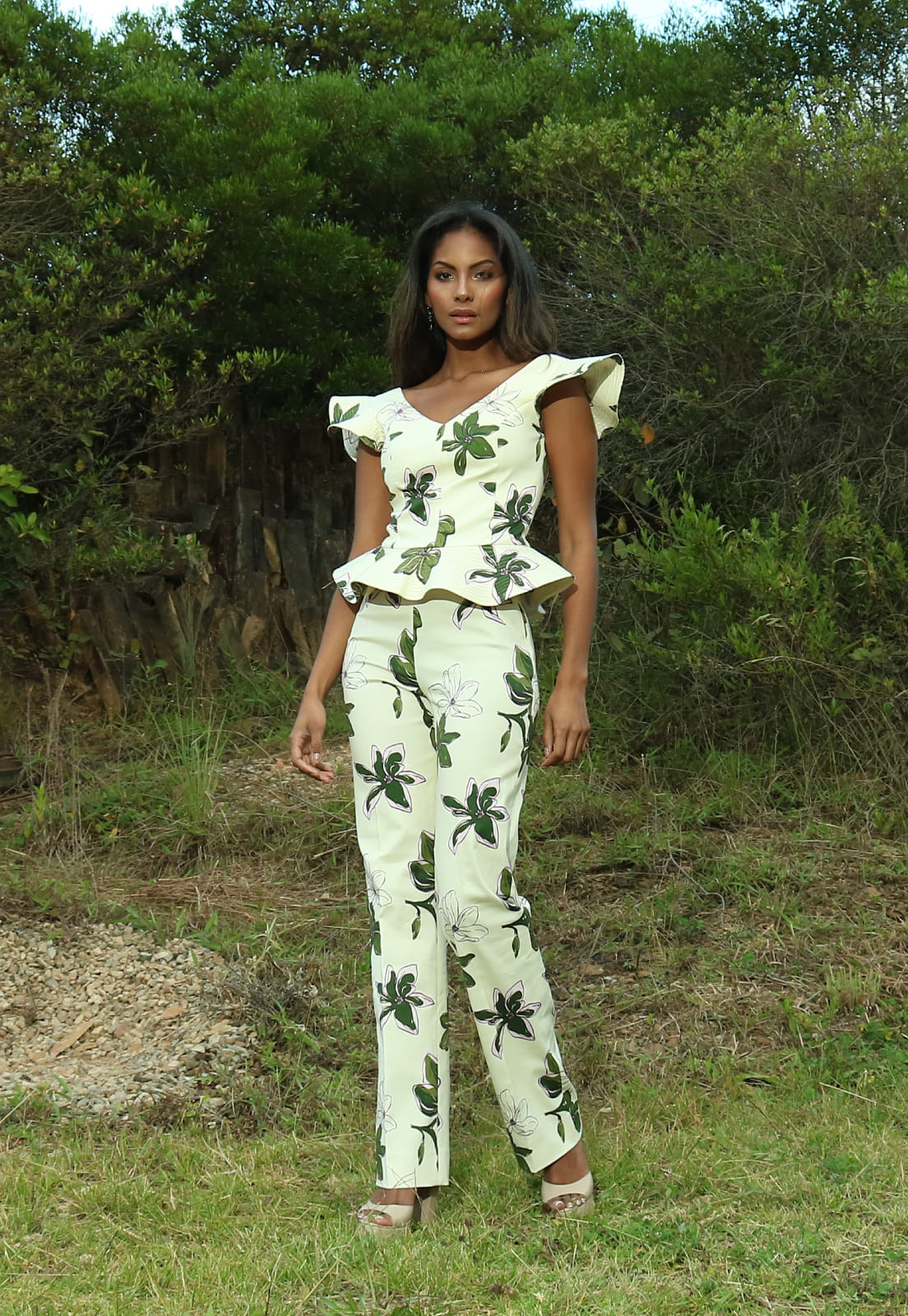 Pantalón bota recta, cremallera invisible lateral y detalles de pespuntes en los laterales del delantero. Lavado en Seco.