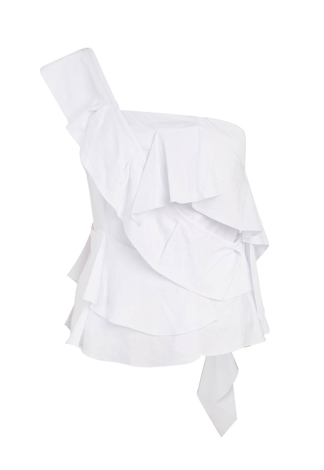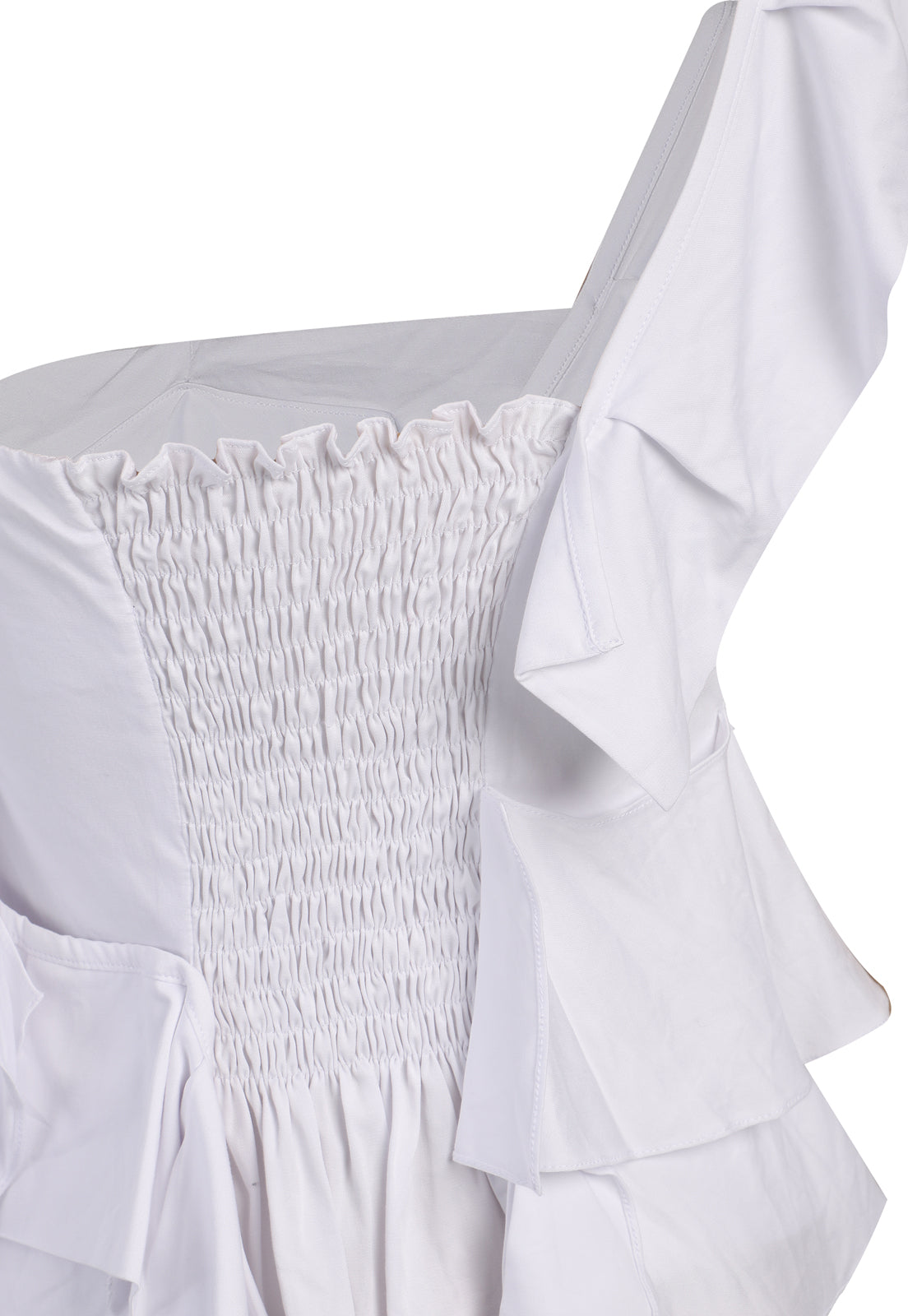 PIEZA ÚNICA. Blusa top en tela chalis blanco. Con resorte en la espalda para un mejor entalle.
